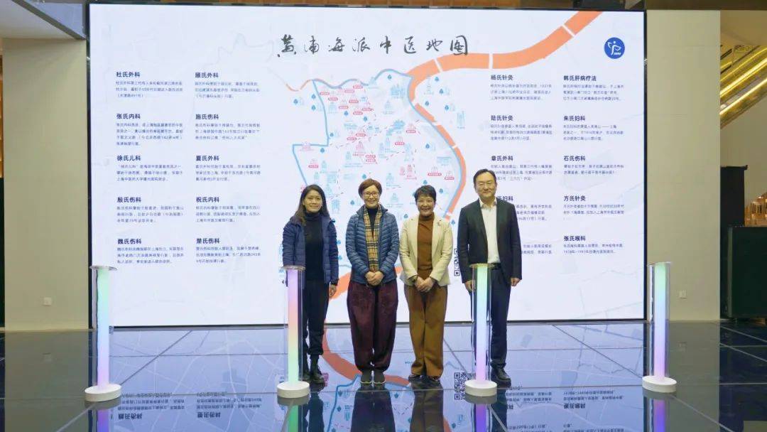 现场,黄浦区政协副主席李原,上海市中医文献馆副馆长王海丽,黄浦区政协教科卫体委专职主任王静,黄浦区卫生健康委员会主任王炜共同对黄浦海派中医地图进行发布,另外黄浦区卫健委为区政协医卫界别委员工作站赠予黄浦海派中医地图艺术作品。