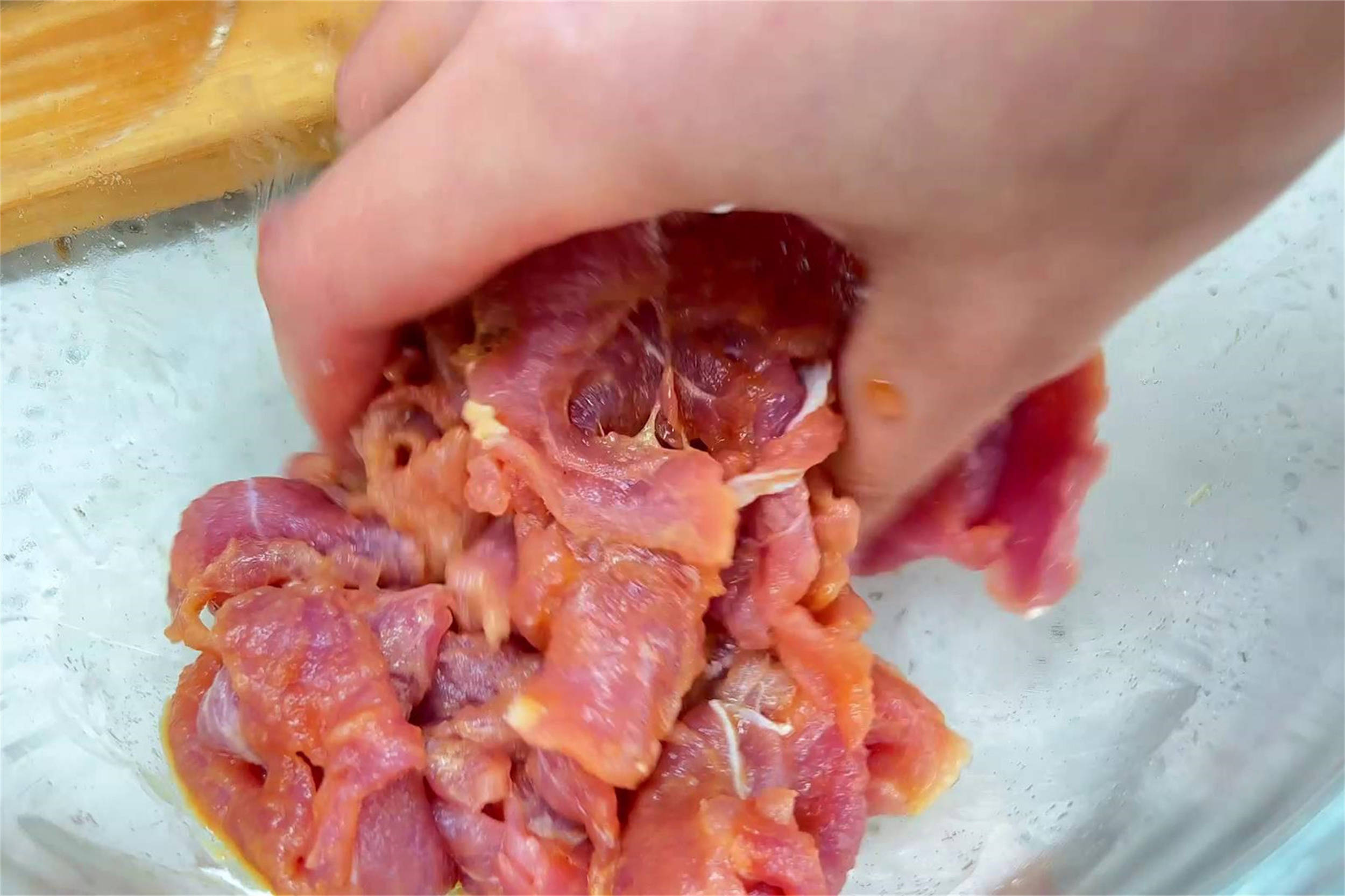 1、里脊肉清洗干净,切成薄片,加入适量的葱姜水搅拌均匀,加入生抽、盐和胡椒粉搅拌均匀,撒上少量的淀粉和油,锁住水分。