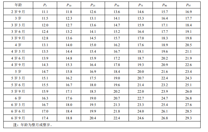 注:表中2岁以下为身长,2岁-7岁以下为身高