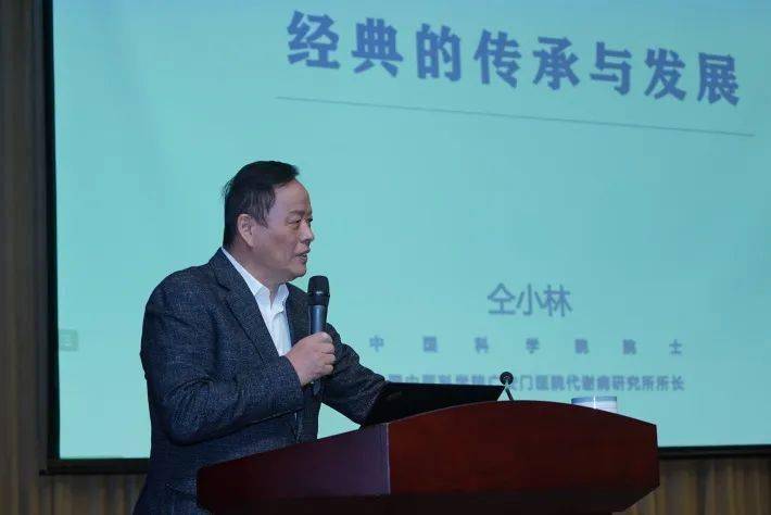 中国科学院院士、我院专家仝小林教授作《经典的传承与发展》主题讲座。通过“中西互参” “拨开迷雾” “突破经典”三部分阐述,仝院士指出,中医治学当溯本求源,以经典为纲,古为今用,传承是基础,发展是归宿。