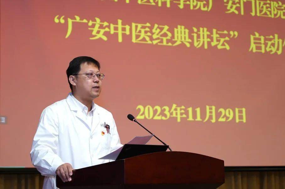 刘震院长在致辞中指出,“广安中医经典讲坛”的设立是我院深入推进中医药传承创新发展的积极探索,也是一院多区发展,人才梯队建设的重要举措。他强调一是把经典继承好、运用好、发扬好;二是把经典运用与临床,切实提高诊断水平和临床疗效;三是坚定中医思维,坚持中西并举,增强中医自信,为中医药事业传承创新做出新的贡献。