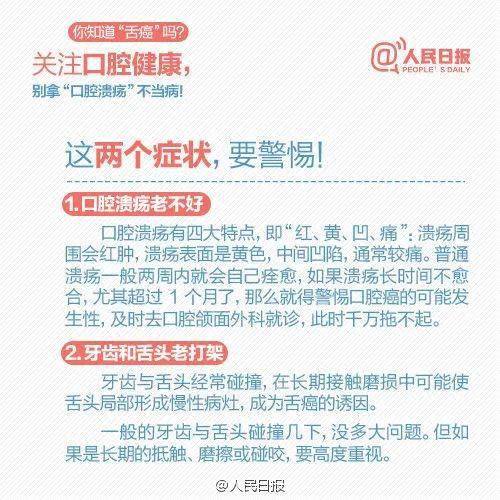 当然,绝大多数的溃疡是普通的溃疡,一般可以在1~2周内自愈,所以也不必过于紧张。但是,如果是长期不愈的口腔溃疡 ,比如超过2周不愈,甚至好几个月也不见好,那一定要警惕口腔癌的可能。