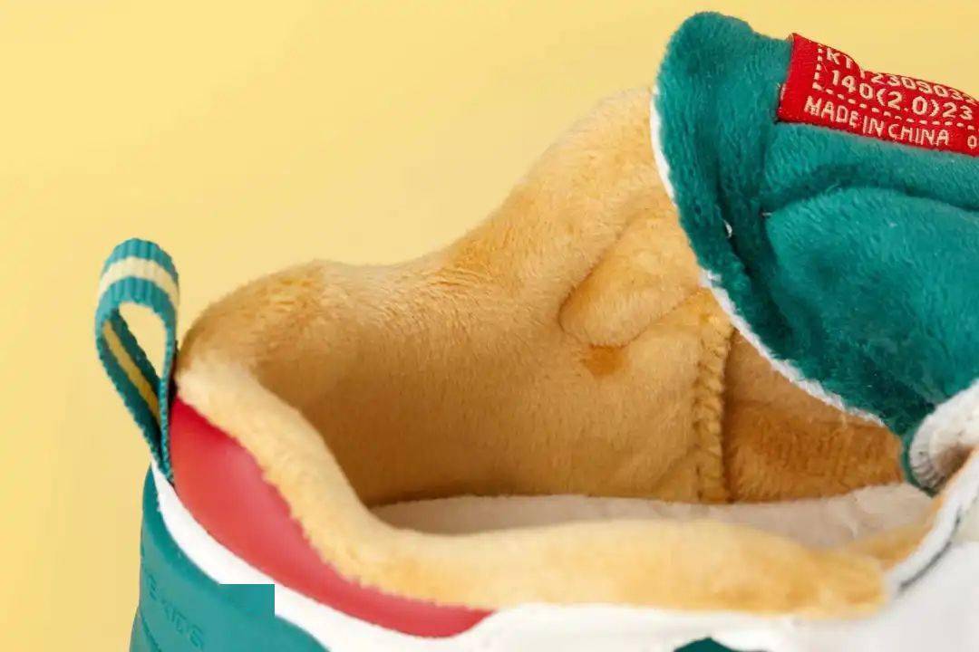 另外值得一提的是,这款面包鞋在鞋口增加了一层缓冲层,就像给鞋口做了个「收口」设计,可以牢牢锁住脚踝不掉脚,不仅让鞋子更加舒适,也能让孩子在运动中更加安全。