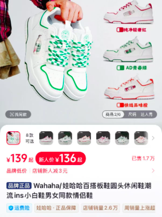 红星资本局4月20日消息,近日,一款电商平台售价139元的“娃哈哈AD钙奶运动鞋”引发关注。此外,还有娃哈哈营养快线运动鞋、娃哈哈纯净水运动鞋。从名称到配色,都有娃哈哈经典饮料的影子。